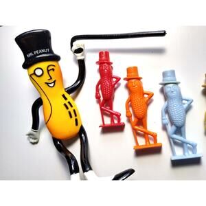 Mr. Peanut Planters Lot Of 5 Items Bendy Figure Red Orange Blue Tan Whistles