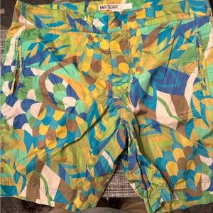 Vibrant shorts with a multicolor pattern. Features shades of blue, green, yellow, and brown. Perfect for a bold look.
