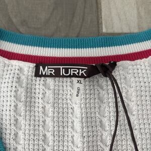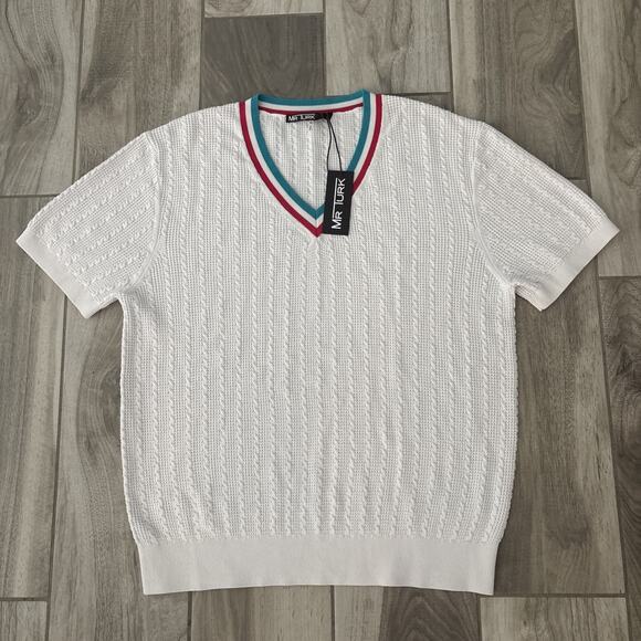 Mr Turk Mateo Short Sleeve V Neck Pullover Sweater Shirt White $268 NWT