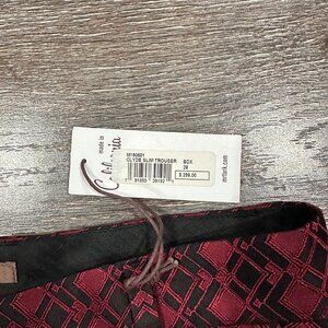 Brand new Mr Turk men’s pants, still with original tags. These feature a striking geometric pattern and rich red-and-black colorway with a subtle textured finish that makes them stand out. Tailored slim fit with the signature Mr Turk flair — perfect for stylish events, nights out, or a bold fashion statement.