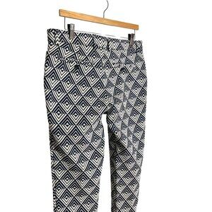 Mr Turk Navy Blue Cream Woven Geometric Pattern Dress Pants 30