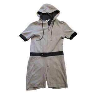 Mr. Turk Short Jumpsuit Men's Medium Black White Houndstooth Hooded Resort