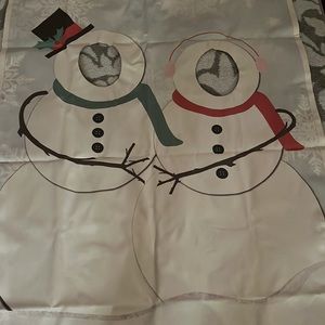 Mr. and Mrs. snowman cut out with holes in the face winter decoration hanging. Great for parties and photo props. Made of canvas material. Measures approximately 71” x 43”. Grommets at the top and bottom for hanging and stabilization.