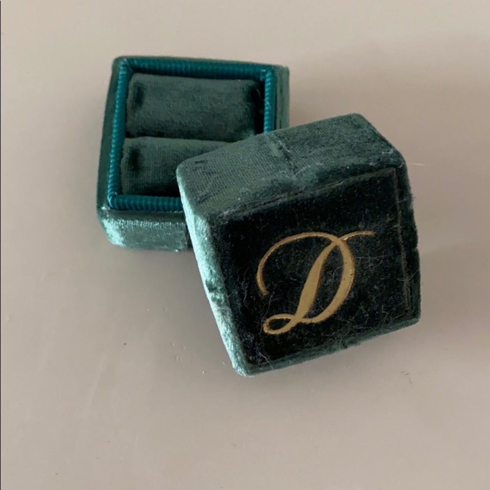 Dark green with single ring slot. Gold accent with large, cursive D on top. Used once in pictures May 2018, no other use since.