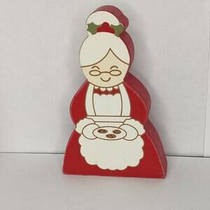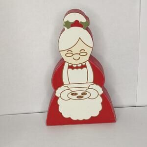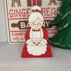 Mrs. Claus Bakery Gingerbread Cookie Plate Wood Tiered Tray Tabletop Decor
