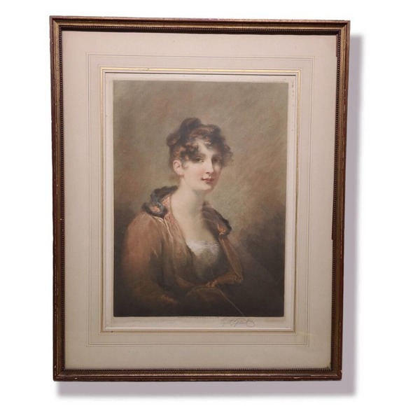 Mrs Irvine Boswell Mezzotint - Print by Elizabeth Gulland, Sir Henry Raeburn. 20 x 1-3/4 x 24-3/4 as it sits in frame.