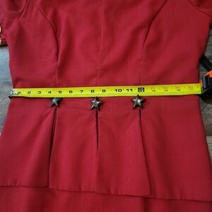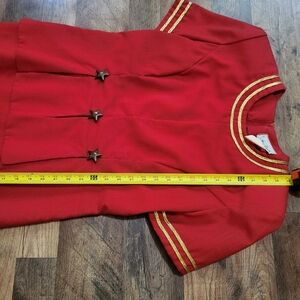 Mrs.Dorby Women's Vintage 80s Gold and Red Star Embellished Zip-Up Midi Dress Size 12. Minor flaws, but good vintage condition
