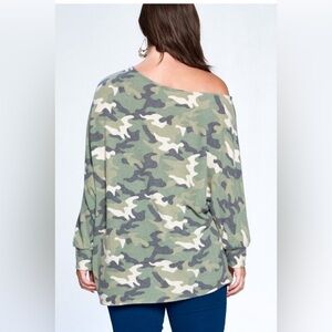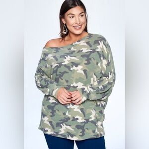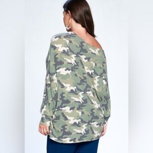 Ms. Diva Plus Soft Camouflage Sweater/Top. Faux cashmere slouchy top. 65% poly 32% rayon 3% spandex. True to size