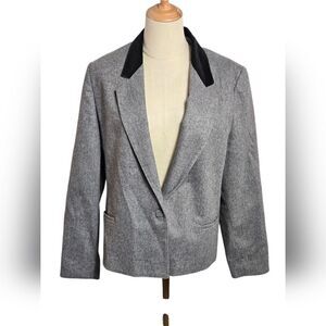 Ms. Jennifer Canada Vintage Gray Wool Blend Velvet Collar Blazer