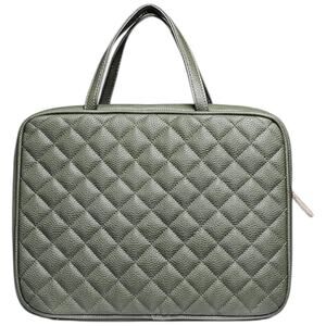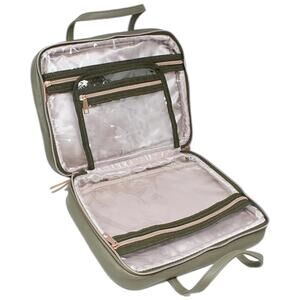 Ms Lovely quilted olive green satin lined toiletry travel bag rose gold zip NWT