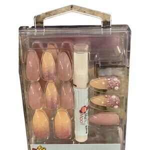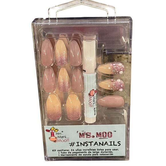 Instagram Nails Ms. Moo Instanails Glue On Nude Pink Gold Embellished Nails NEW.