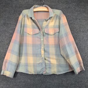 Ms Russ Womens Button Front Shirt Multi Plaid XXL Button Front Long Sleeve