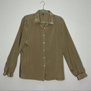 Ms.Russ tan white polka dot button down