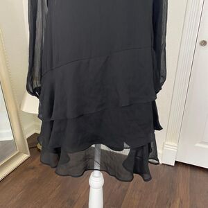 Msk Whimsygoth Boho Witchy Black Frilly Micro Mesh Layered Mini Midi Dress S