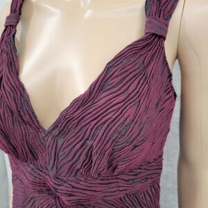 Mssp Women's Medium Burgundy Black Abstract Zebra Animal Print Textured Dress