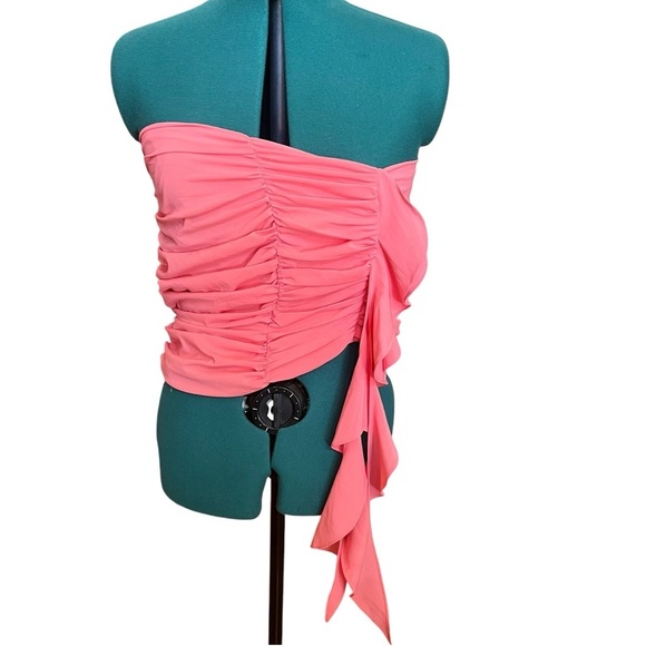 Místress Rocks Coral Ruffled Strapless Cropped Top