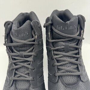 The boots come in a sleek Black color with a Solid pattern and are adorned with the Mt. Emey logo. With a Mid-Calf Shoe Shaft Style and Extra Depth, these boots provide added support for your feet. The boots are manufactured in 2020 and are available in US Shoe Size 10.5 and UK Shoe Size 9.5. Get ready for any season, whether it be Winter, Summer, Fall, or Spring, and conquer any hiking trail with these Mt. Emey 9713 boots.
