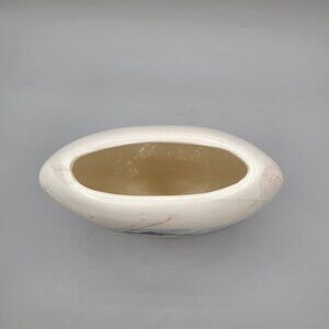 A beautiful flat vase made of clay and volcanic ash from the eruption of Mt Saint Helens, WA. Made in the 1980's. Decorated with colorful scene of orca whales swimming and jumping in the Puget Sound.