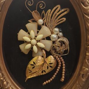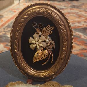 absolutely stunning is also a piece of handmade jewelry. vintage brooches wall art comes on stand or you can hang on the wall. just a gorgeous set.