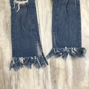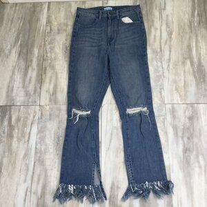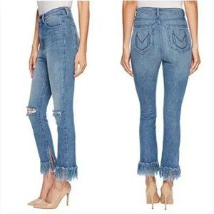 MuMu Blue Brooklyn High Waist Fringe Hem Distressed Jean 28