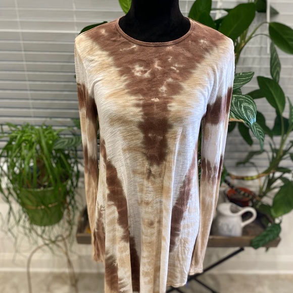 MuMu Mellow brown and beige tie die long sleeve top. Pit to pit 18.5” length 32” sleeves 26”