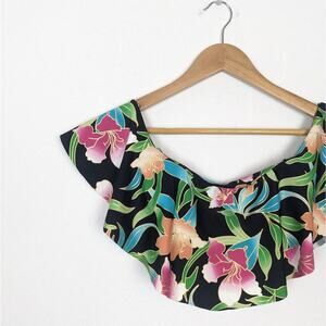 MuMu Mermaid Black Multicolored Tropical Floral Off Shoulder Ruffle Swim Top