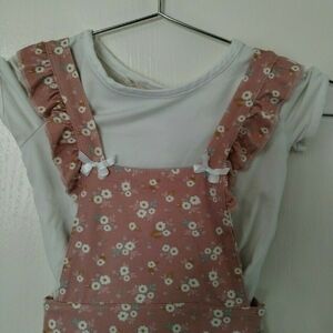 MuMuCoCo Pink Floral Jumper Dress With White Tee Size 3T 2 piece set