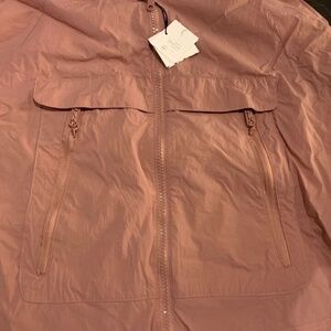 Brand new with tags in perfect condition. It has been stored folded, hence the wrinkles, which will absolutely come out. The poncho is in perfect new condition. Beautiful mauve pink - the flattering (French) mute pink/beige shade rather than the bright pink. Convenient zippered front pocket, hood, snaps at wrists.