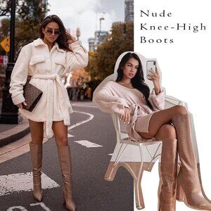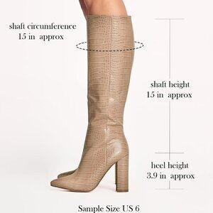 Chunky Heel Boots: Boots for women knee high with chunky heel design have a heel height of about 10cm/3.94". Thanks to this block heel design, they're perfect for long walks without fatigue