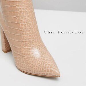 Fashion Boots for Women: Faux crocodile pointed toe boots keep up with the latest trends in fierce chic style. Black /Silver/Green/Nude four bright color to choose. Featuring a half inner side zipper for easy on/off. Perfect for all seasons