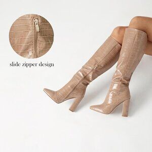 Crocodile Knee High Boots: MUCCCUTE high heels boots womenare made of high quality faux shiny crocodile leather upper, comfortable breathable lining and non-slip rubber outsole