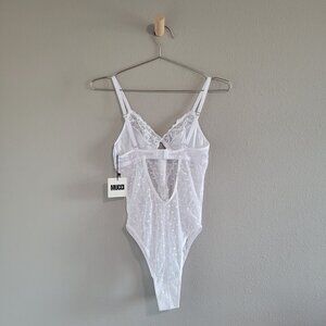 Mucci Soft Stretchy Sheer Lace Luna Bodysuit Size Small In White