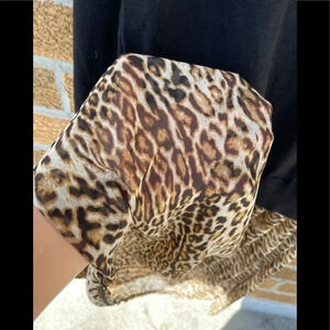 This knit sweater dress features a boat neck and an attached flowy chiffon leopard skirt.