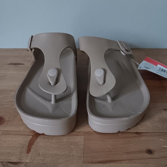Mucho Mahalo Maui Women's Platform Toe Post Buckle Sandals Mocha SZ 9 NWT