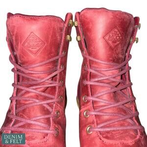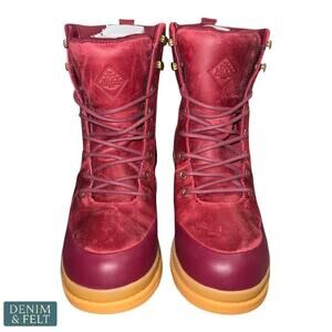 Muck Liberty Burgundy Leather Lace-Up Waterproof Wedge Boots Women’s Size 9 NEW