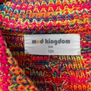 Mud Kingdom Cardigan Sweater Girl's Knit Ribbed Flower Buttons 120 cm 6-7 Cotton