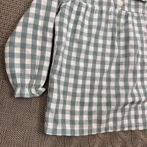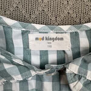 This charming checkered plaid shirt from is perfect for your little one. Featuring a delightful green pattern and standout Peter Pan collar, it's both stylish and comfortable for everyday wear. Mud Kingdom, 110/5 and in overall great condition but please note a tiny spot that I am pointing to in the photos.