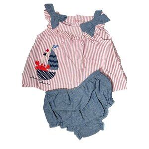 Mud Pie 3-6m NWOT pinafore bloomer set crab Sailboat nautical Sail away red blue