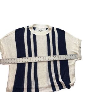 Ribboned knit pull-over features custom stripe patterns, ribbed neckline and sleeve openings.