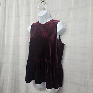 Mud Pie Burgundy Plum Velour Tank Peplum Y2K Goth Boho M