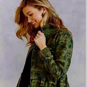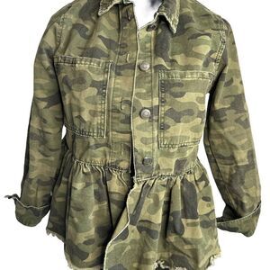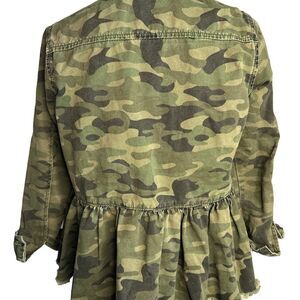 Mud Pie Camo Button Down Jacket Peplum Raw Hem Size Small