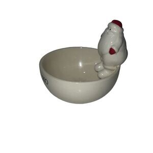 Good, preloved condition. Mud Pie Ceramic Candy Dish 3D Santa Sits Ho Ho Ho Christmas Trinket Bowl Holiday. Decoration. Table decor. Off-white, cream shade. Santa holding tree. Bowl approximate 4.5”. Approximately 5” tall to Santa hat.