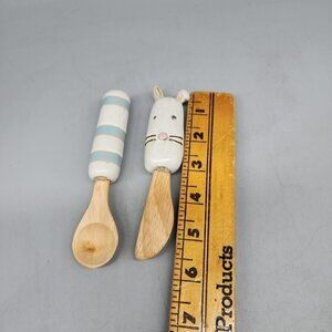 Mud Pie Ceramic Egg Easter Bunny Decorative Bowl Scoop Spoon Knife