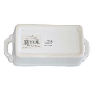 This charming Mud Pie set includes a delightful mini loaf pan and a serving knife, perfect for adding a touch of homemade goodness to your gatherings. The white ceramic loaf pan features the word 'Homemade'. The Serving Knife is designed to complement the loaf pan for easy and elegant serving. This Mud Pie set is in excellent condition, ready to bring warmth and style to your kitchen or dining table. It is ideal for serving bread, appetizers, or desserts with a personal touch. Perfect for gifting or adding to your own serve-ware collection!