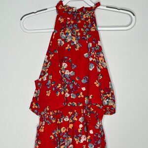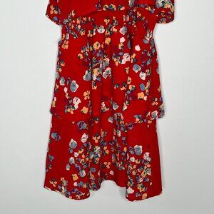 Mud Pie Dress Womens Medium Sundress Mini Boho Floral Sleeveless Tiered Red Work