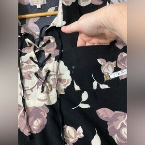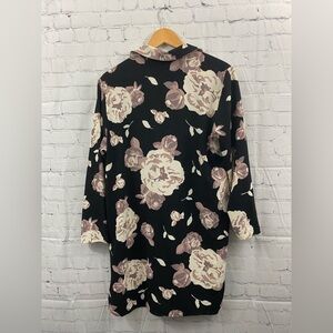 Mud Pie Floral Long-Sleeve Shirt Dress Lace-Up Neckline Womens Size Large