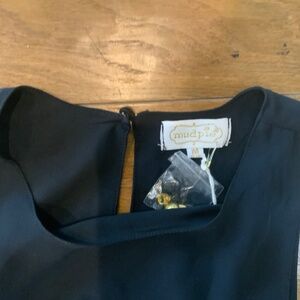 Mud Pie New With Tags and extra buttons. Black maxi dress. Size M. High slits on either side. Outer dress 100% polyester. Inner lining 90% polyester/10% spandex. Sleeveless. Keyhole back with button.