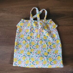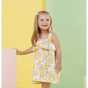 Mud Pie Girls Dress 5T Lemon Floral Ruffle Yellow White Sundress Muslin Cotton