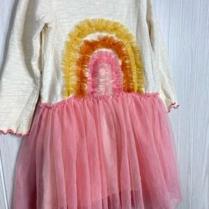Mud Pie Girls Dress Rainbow Long Sleeve Size 2T-3T Tulle Skirt Pink Orange