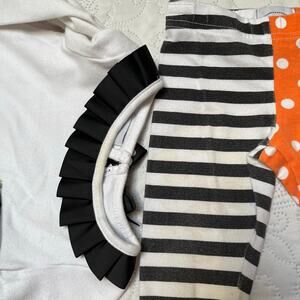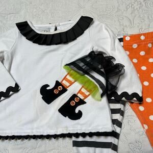 Mud Pie two piece baby outfit. Tulle witch applique design top and mixed print stripe and polka dot leggings. Play condition for light spots and wash wear. Size 6-9 months.
